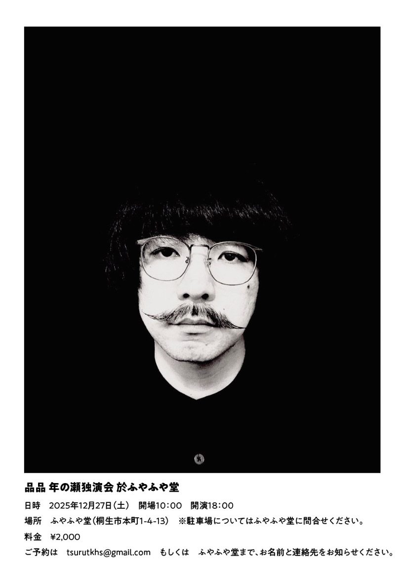 12月27日(土)群馬・桐生 ふやふや堂『年の瀬独演会』に出演します。