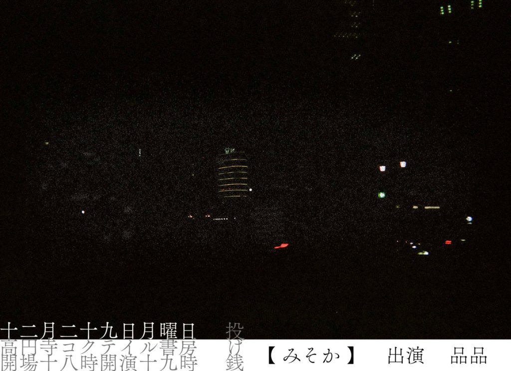 12月29日(月)東京・高円寺コクテイル書房『みそか』に出演します。
