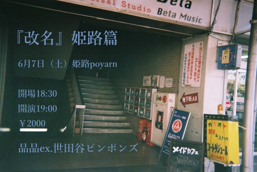 6月7日(土)姫路・poyarn『改名』姫路篇に出演します。