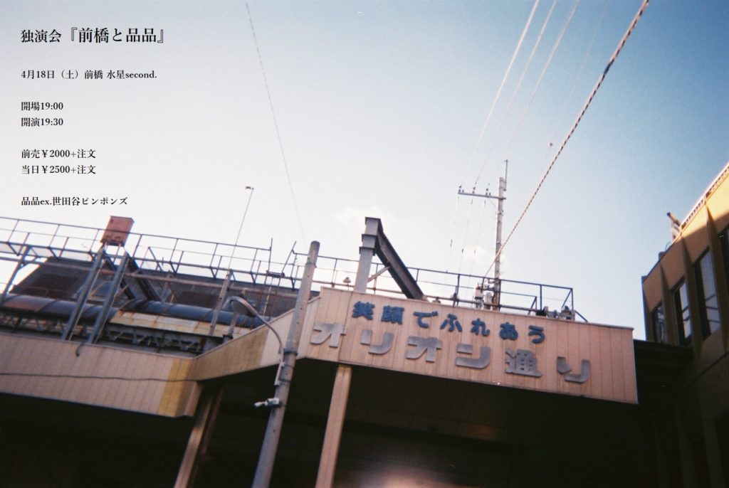 4月18日(土)前橋・水星second.『前橋と品品』に出演します。